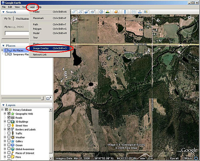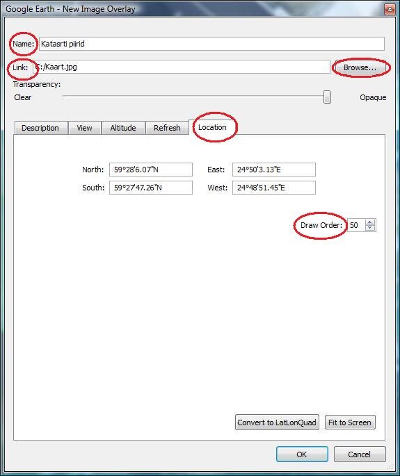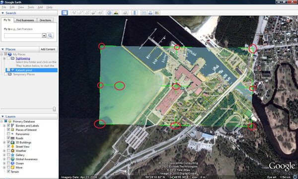 Enne New Image Overlay kasti sulgemist pead sa oma JPEG pildi kalibreerima (geo-referents) vastavalt all olevale Google satelliit pildile.