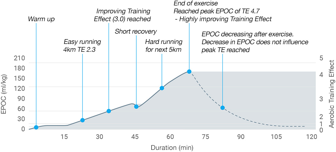 Sinu Garmini käekella Firstbeati analüütiline mootor prognoosib oskuslikult hapniku treeningujärgse liigtarbimise hulka (EPOC) reaalajas, analüüsides südamelöökide andmeid ning rakendades täiustatud matemaatilisi mudeleid ja masinõpet.