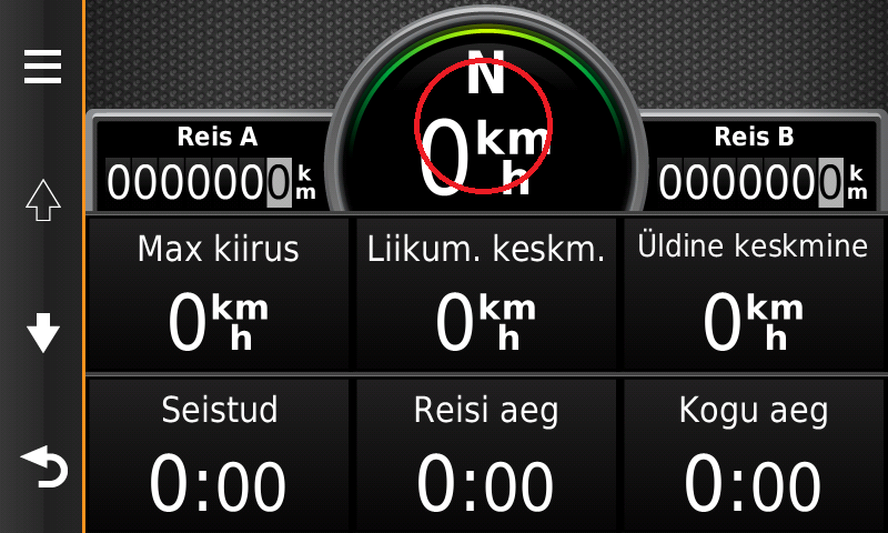 Hoia näppu spidomeetri näidu peal niikaua kuni avaneb uus menüü.