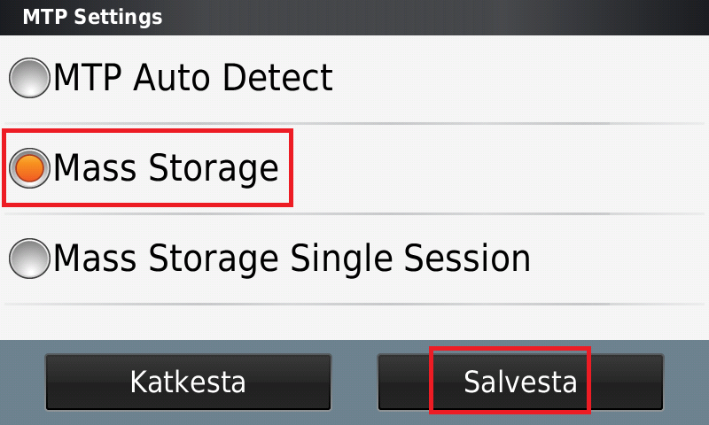 Vali Mass Storage ja vajuta salvesta.