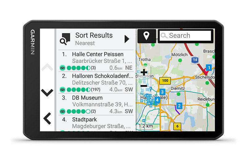 | View Tripadvisor® traveller ratings for hotels, restaurants and attractions along your route or near your destination. Preloaded Foursquare® content makes it easy to find millions of new and popular places. | Drive confidently with map updates and detailed street maps of Europe and Southern Africa. | See what’s behind your truck with a BC™ 50 wireless backup camera (sold separately). |