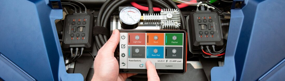 | Kokku kuue kuni 30-amprise vooluahelaga saad toita ja juhtida igat tüüpi 12-voldiseid lisaseadmeid ühest Garmin PowerSwitchi digitaalsest lülituskarbist. | Garmin PowerSwitchi süsteem hõlbustab igat tüüpi välimiste valgustuspakettide lisamist oma sõidukile - kõik alates valgusribadest ja udutuledest kuni hädatulede, tagatulede ja kivituledeni. | Lisaks sõidukite tuledele saad kasutada Garmin PowerSwitchi igat liiki kasulike seadmetega: raadiod, külmikud, õhukompressorid või ükskõik millega, mis töötab 12-voldise võimsusega. |