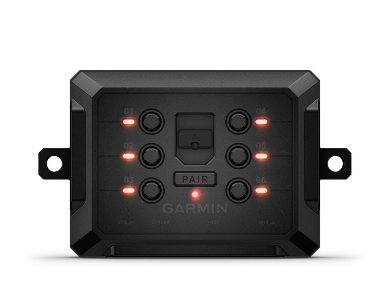 Garmin PowerSwitch on kompaktne digitaalne lülituskarp, mis pakub sinu sõiduki 12-voldiste lisaseadmete mugavat tsentraliseeritud juhtimist ühilduvast1 Garmini navigaatorist või nutitelefonist2.