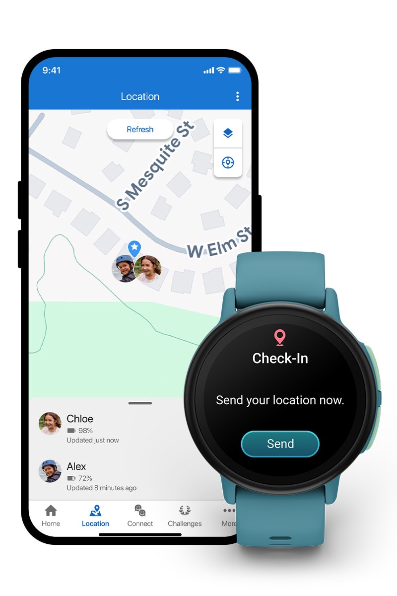 Loo rakenduses Garmin Jr. kontakt oma lapse sõpradega ja teiste peredega. Suhtle nendega ja võistelge peredega iganädalastel sammuväljakutsetel.